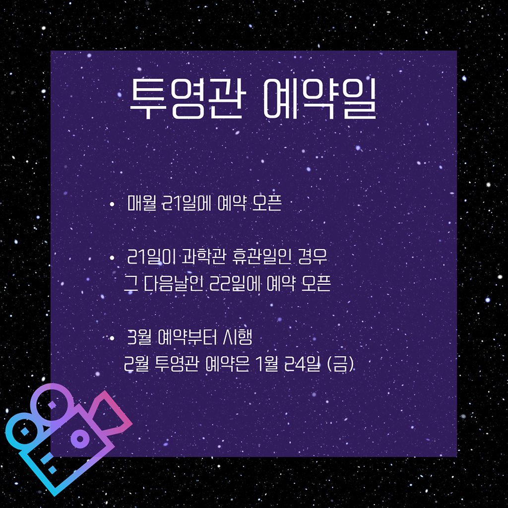 2월 투영관 예약 오픈일은 1월 24일 (금)입니다.