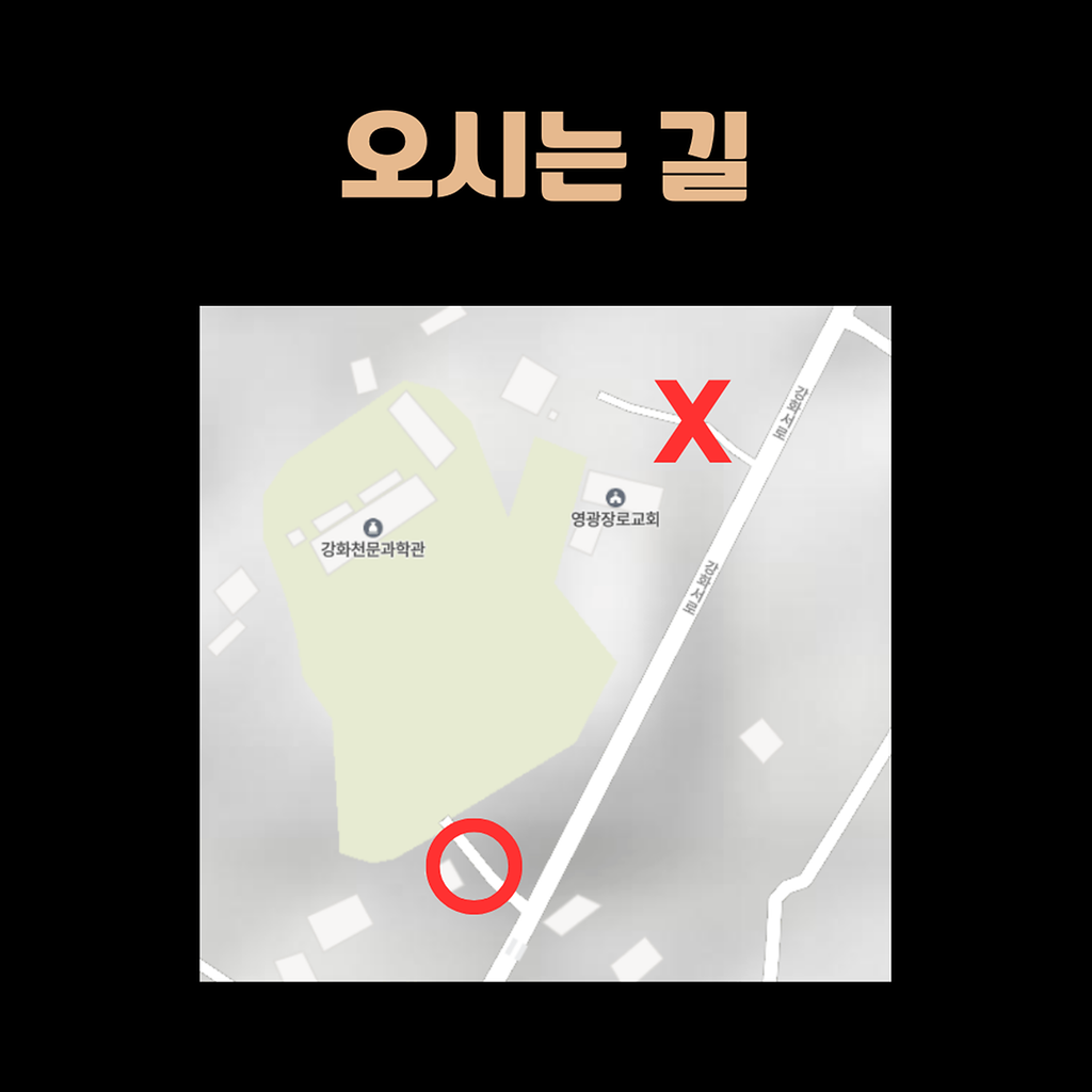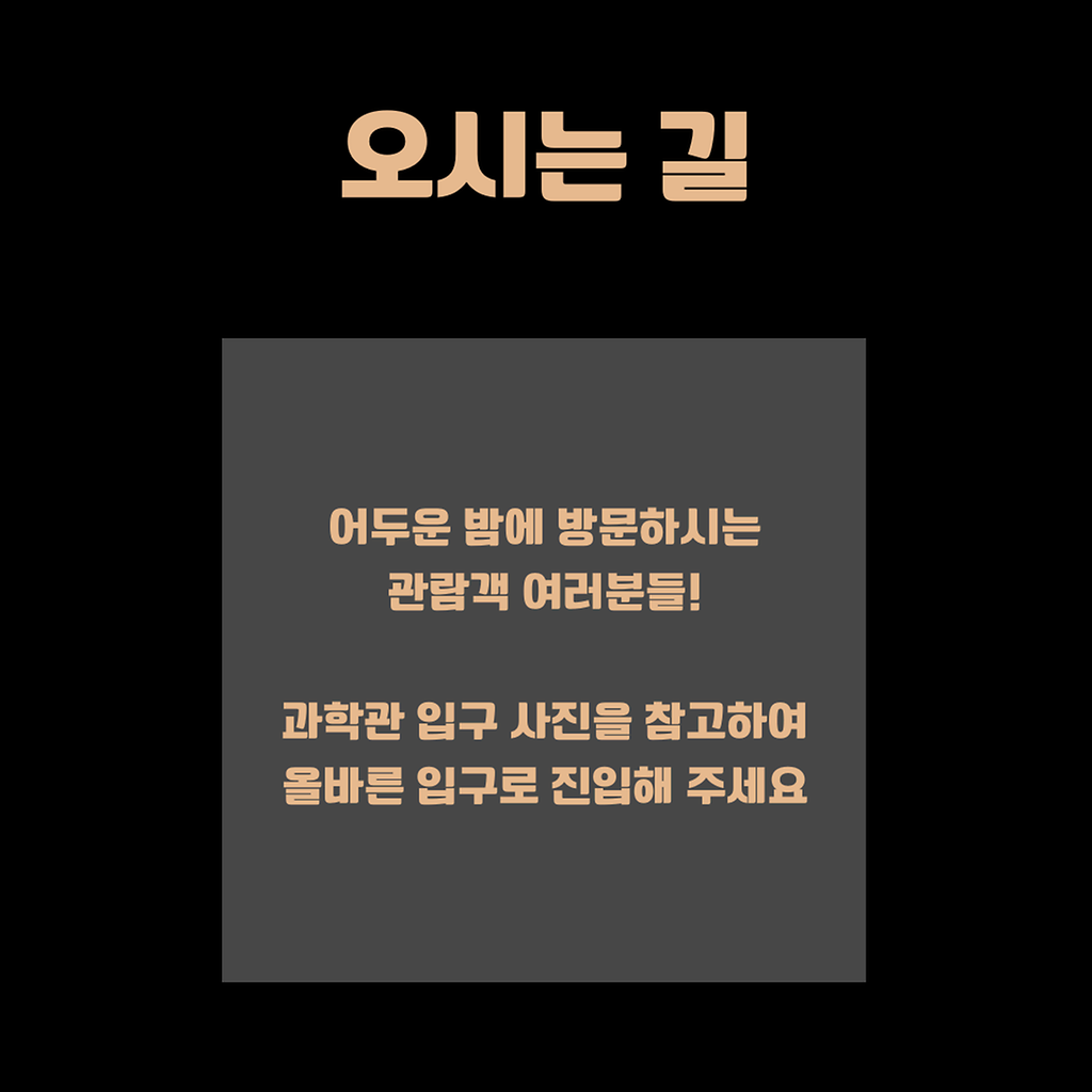 어두운 밤, 초행길 등의 이유로 과학관이 아닌 주변의 다른 건물로 진입하는 경우가 간혹 발생합니다.