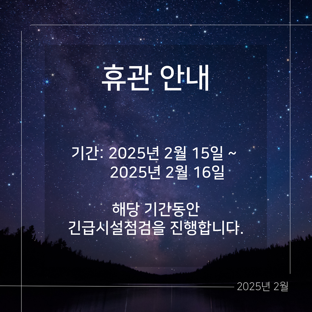 시설점검이 이루어지는 2월 15일 ~ 2월 16일은 휴관합니다.