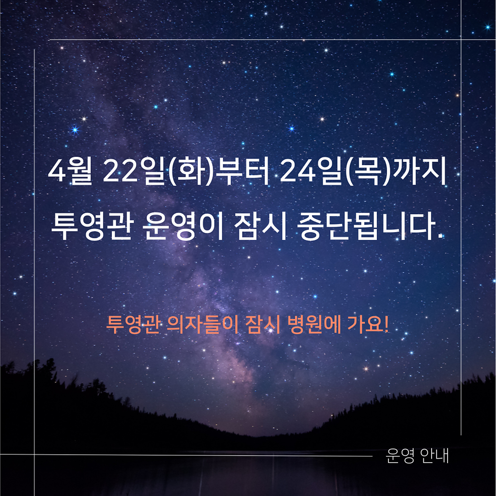 4월 22일 화요일부터 24일 목요일까지 투영관 운영이 잠시 중단됩니다.