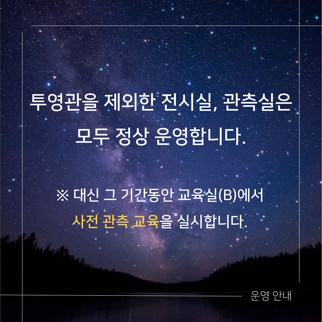 (투영관을 제외한 전시실, 관측실은 모두 정상 운영됩니다.)