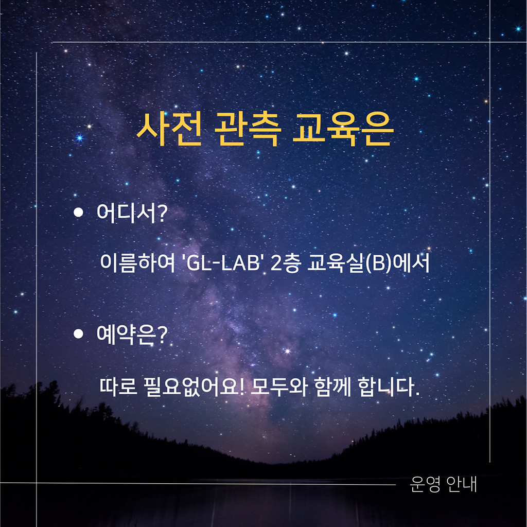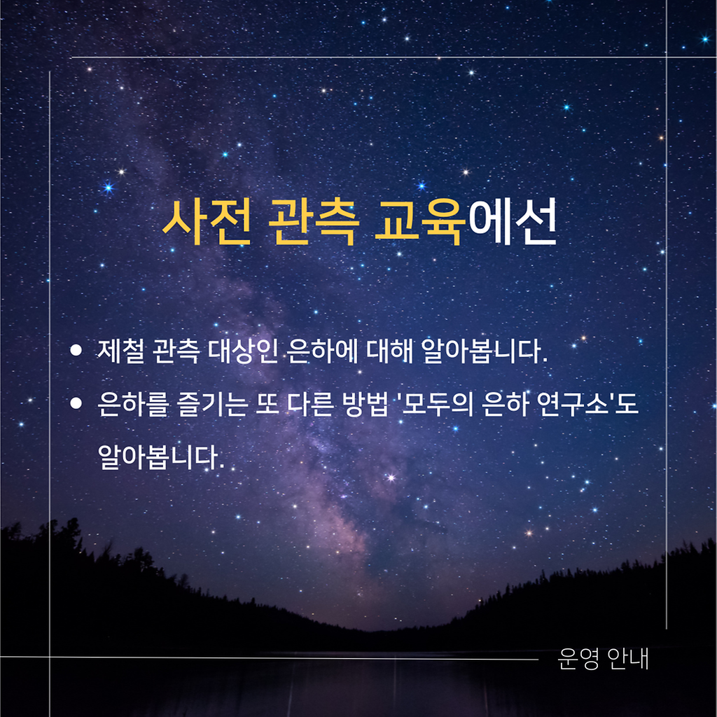 '사전 관측 교육'은 예약없이 누구나 참여하실 수 있습니다.