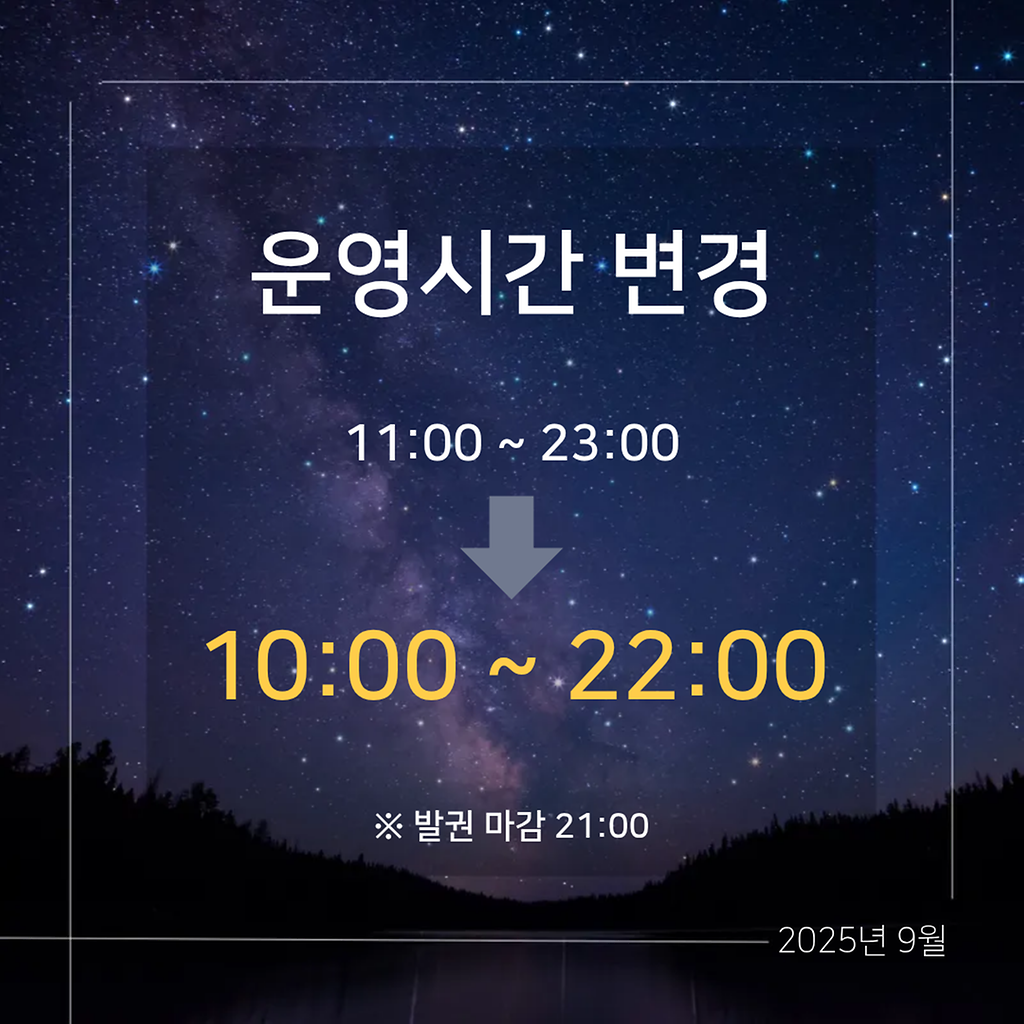ㅇ (운영 시간) 9월 1일 부터 10:00 ~ 22:00로 변경
