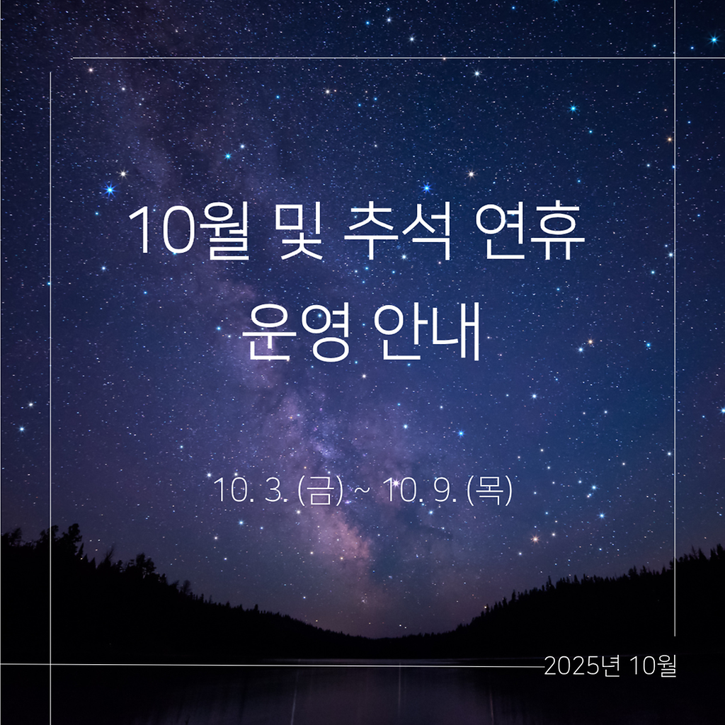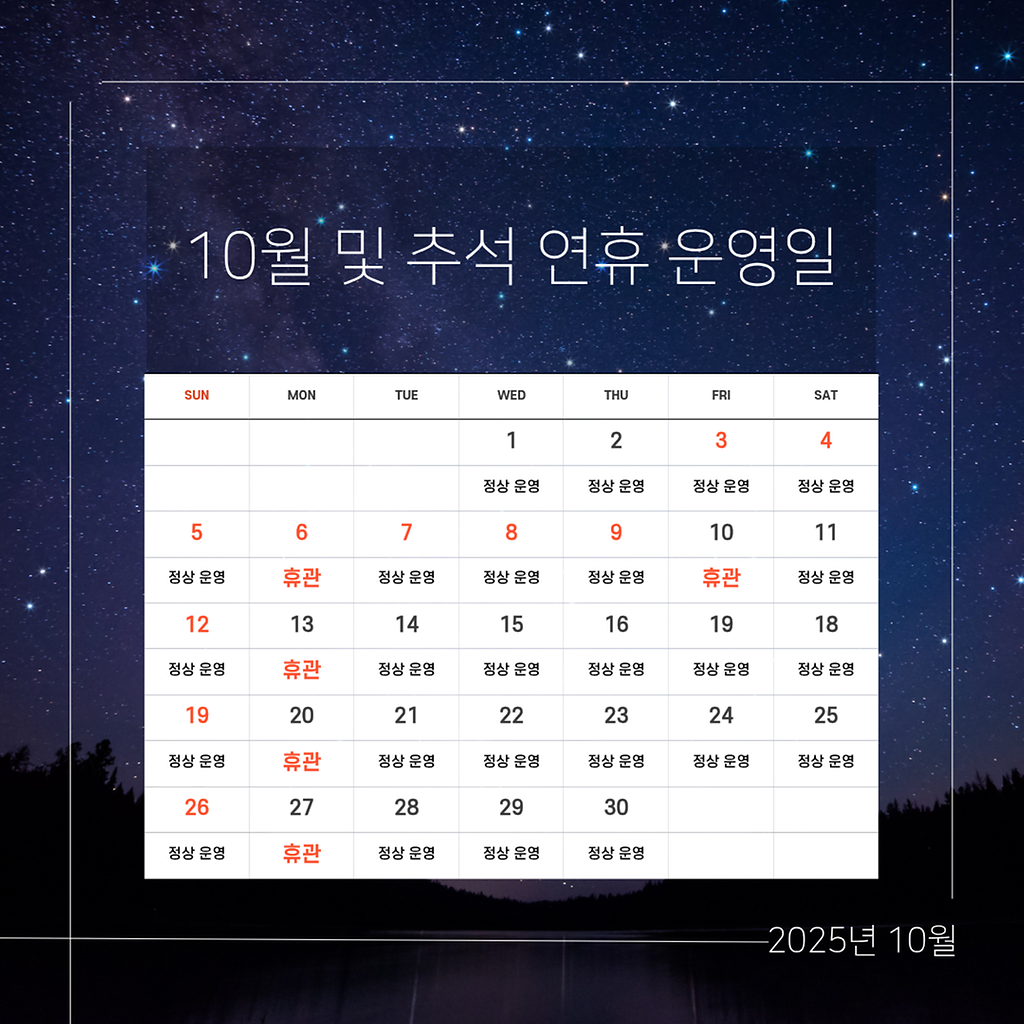 ㅇ (휴관일) 10월 6일 (월) 추석 당일, 10월 10일 (금) 연휴 다음날