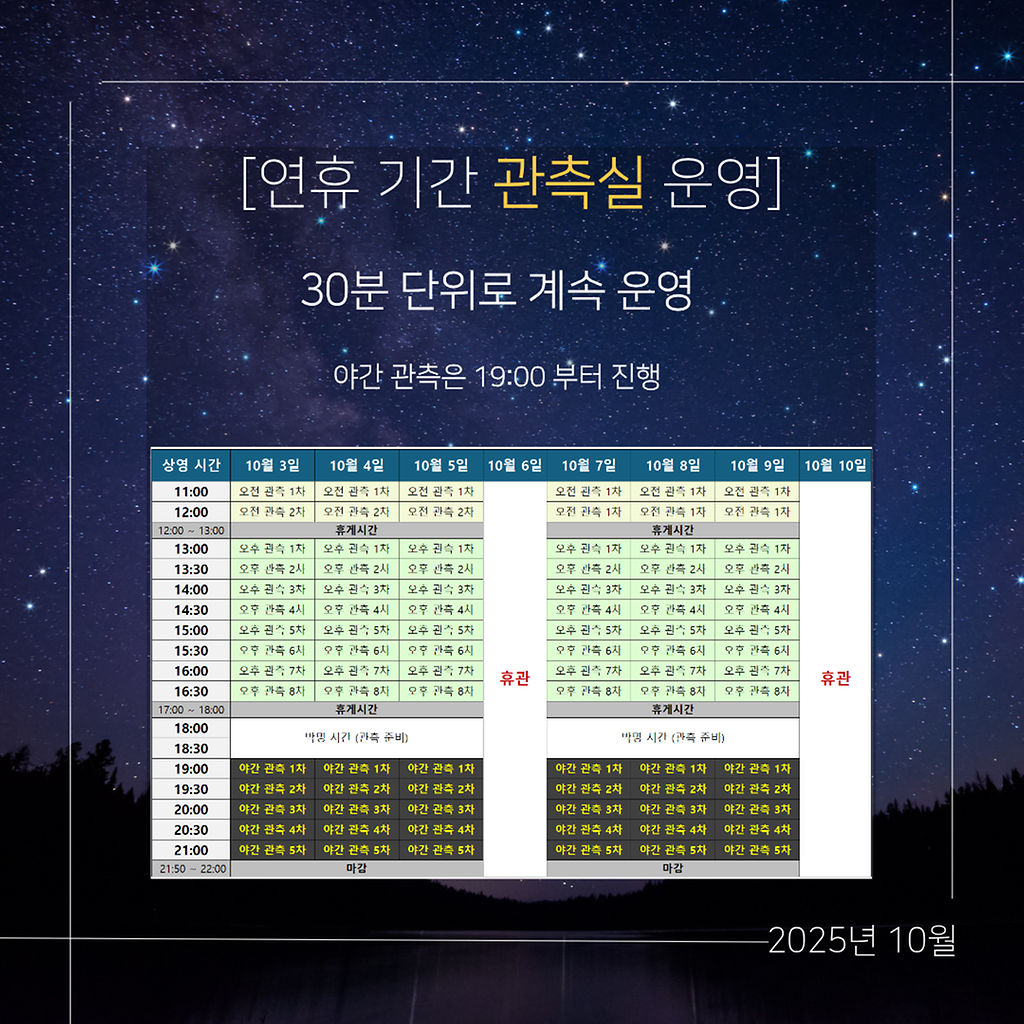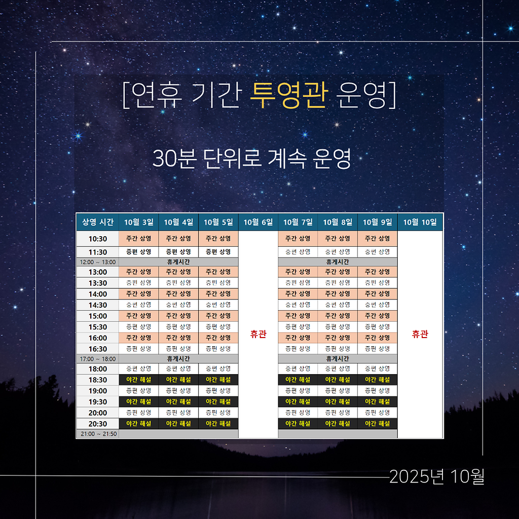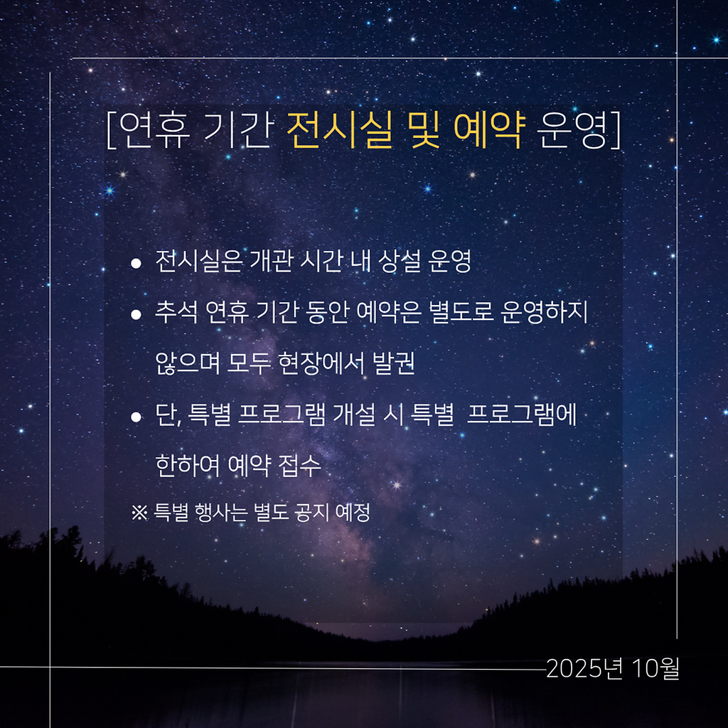 ※ 추석 연휴 기간 동안 투영관 예약은 별도로 운영하지 않습니다.