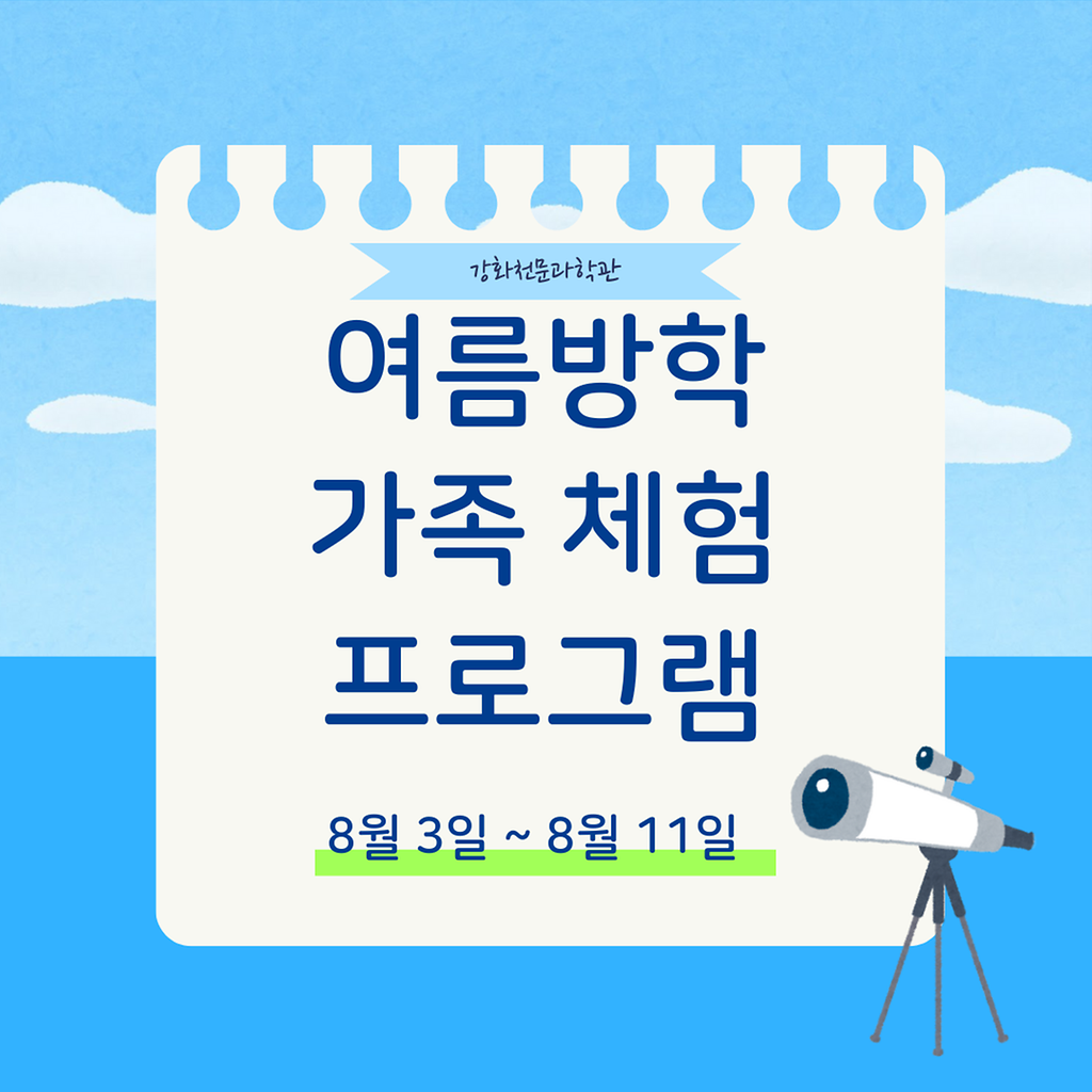 여름방학을 맞이하여 강화천문과학관에서 여름방학 특별 교육을 진행하오니 많은 참여 바랍니다.