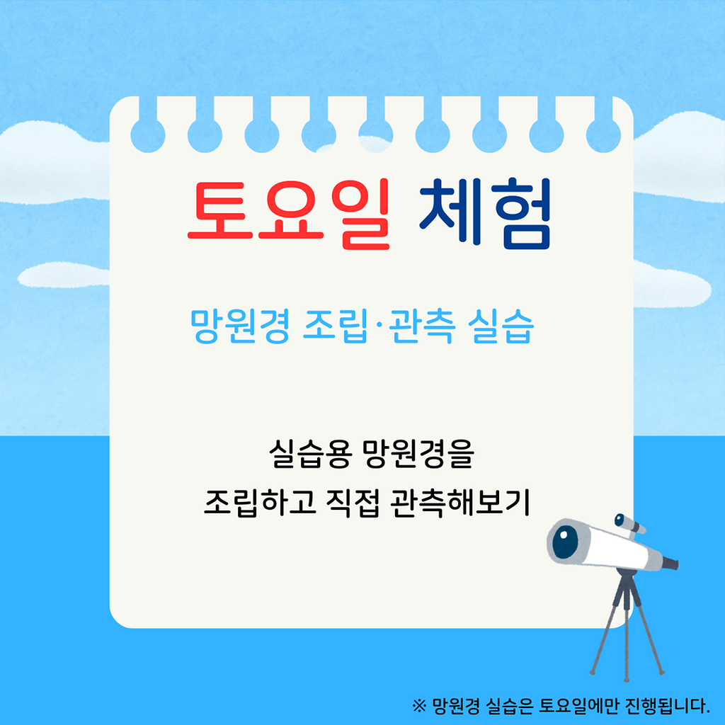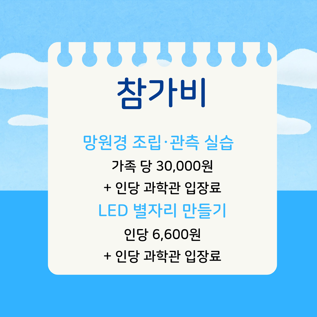 - 망원경 조립·관측 실습 참가비 : 가족 당 30,000원