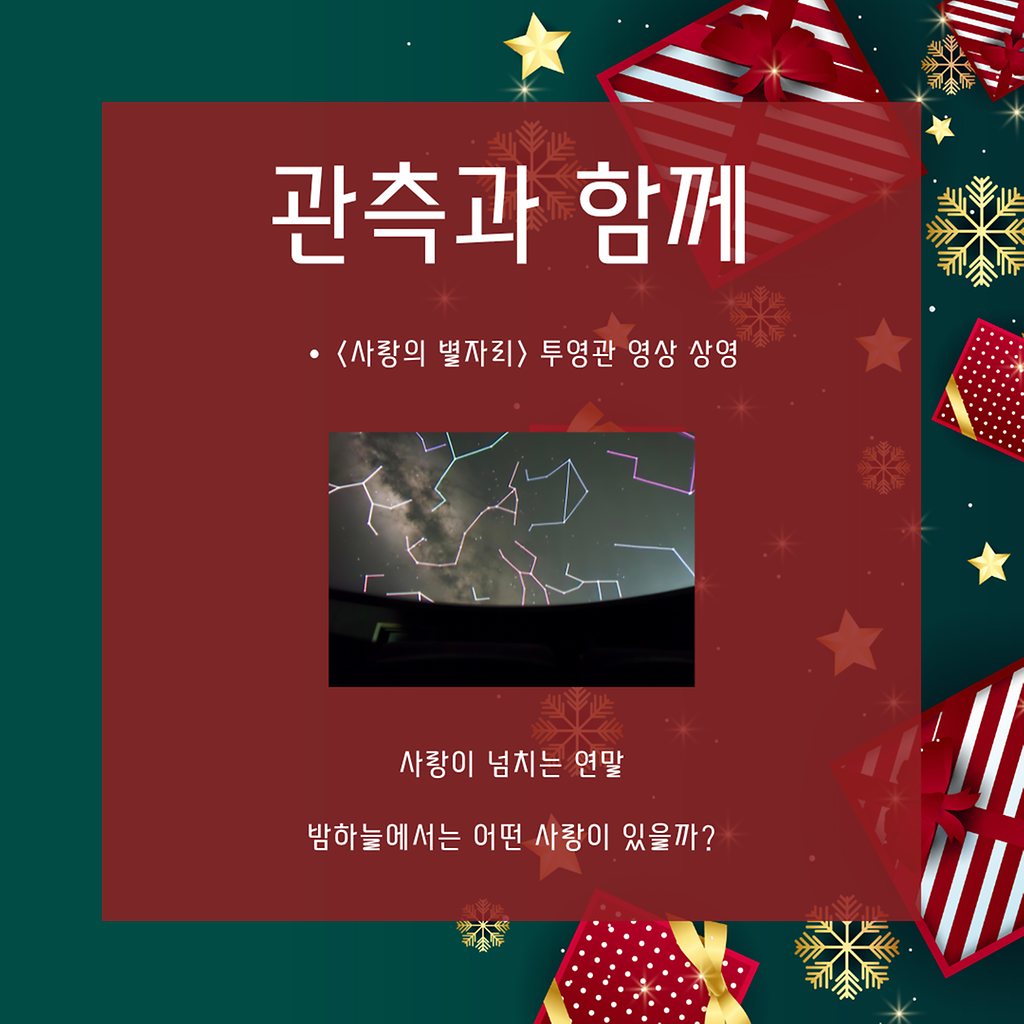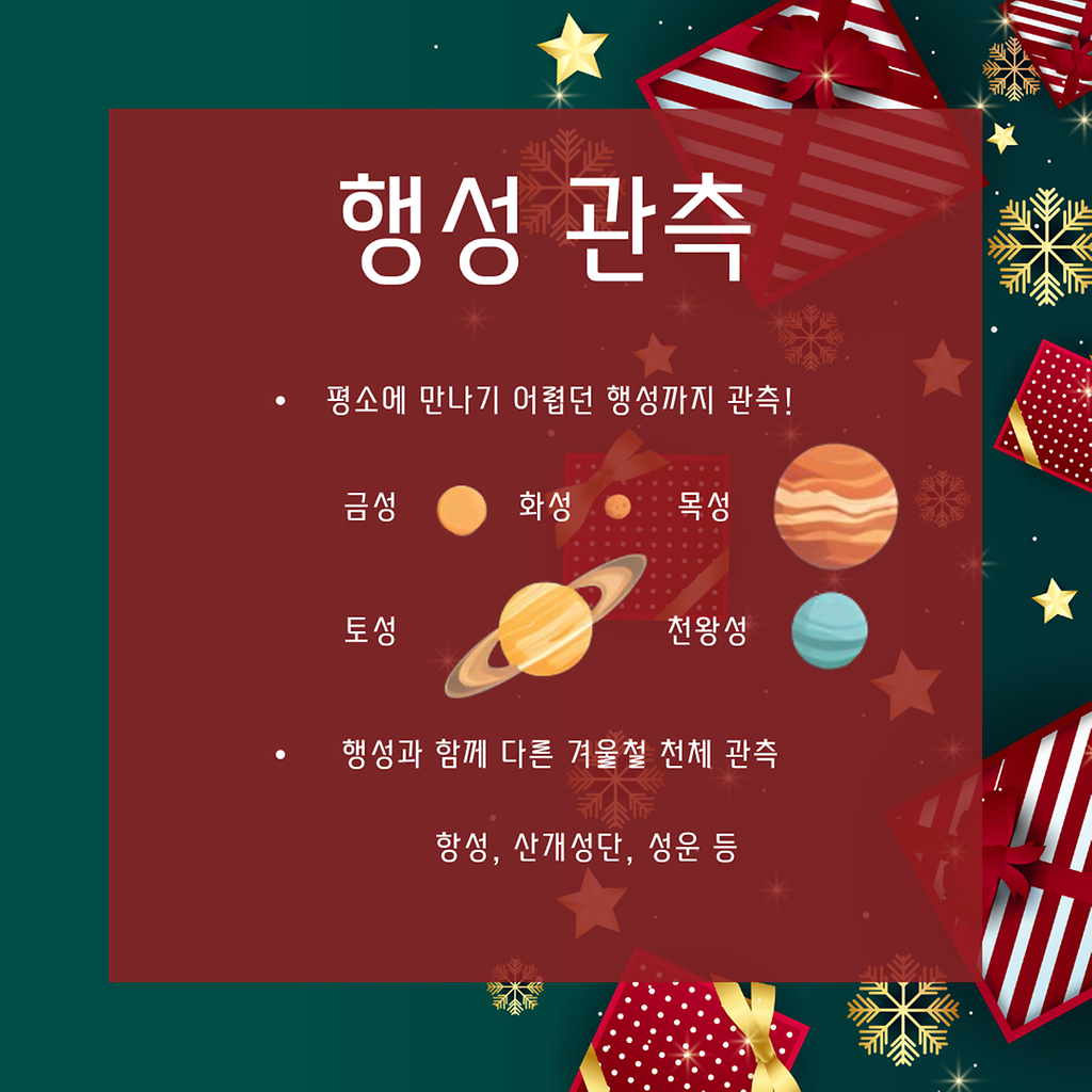 12월 20일부터 29일까지 송구영신 행성관측회를 진행합니다.