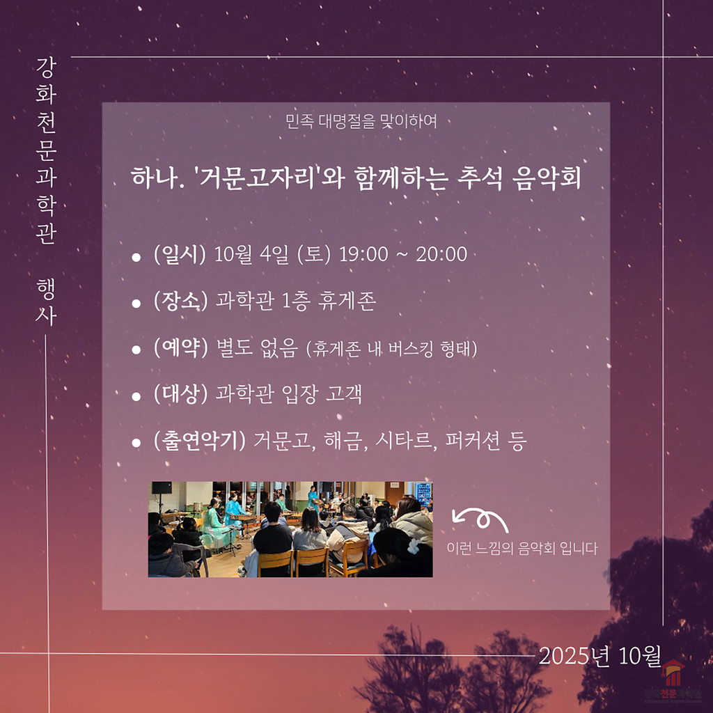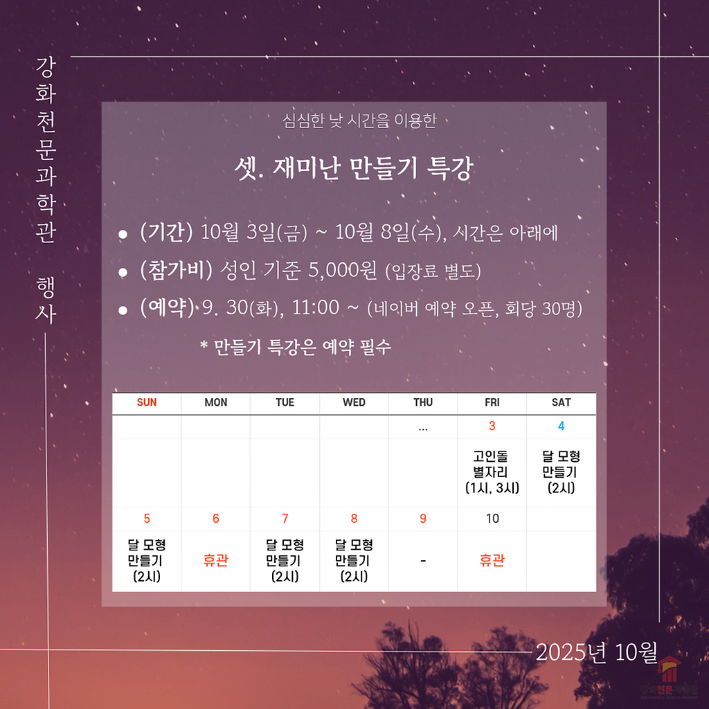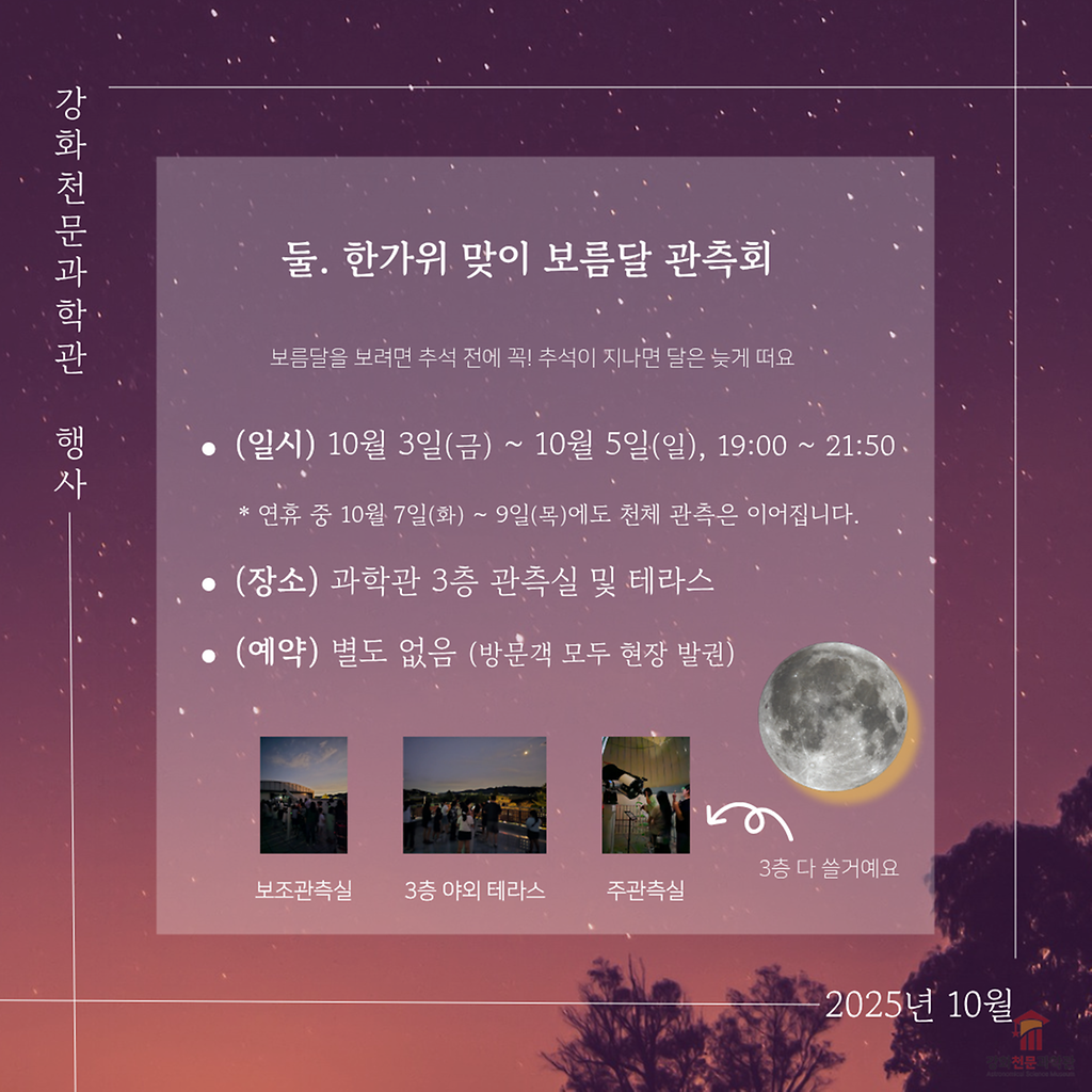 강화천문과학관에서 실시하는 행사 및 특별프로그램에 대한 안내입니다.