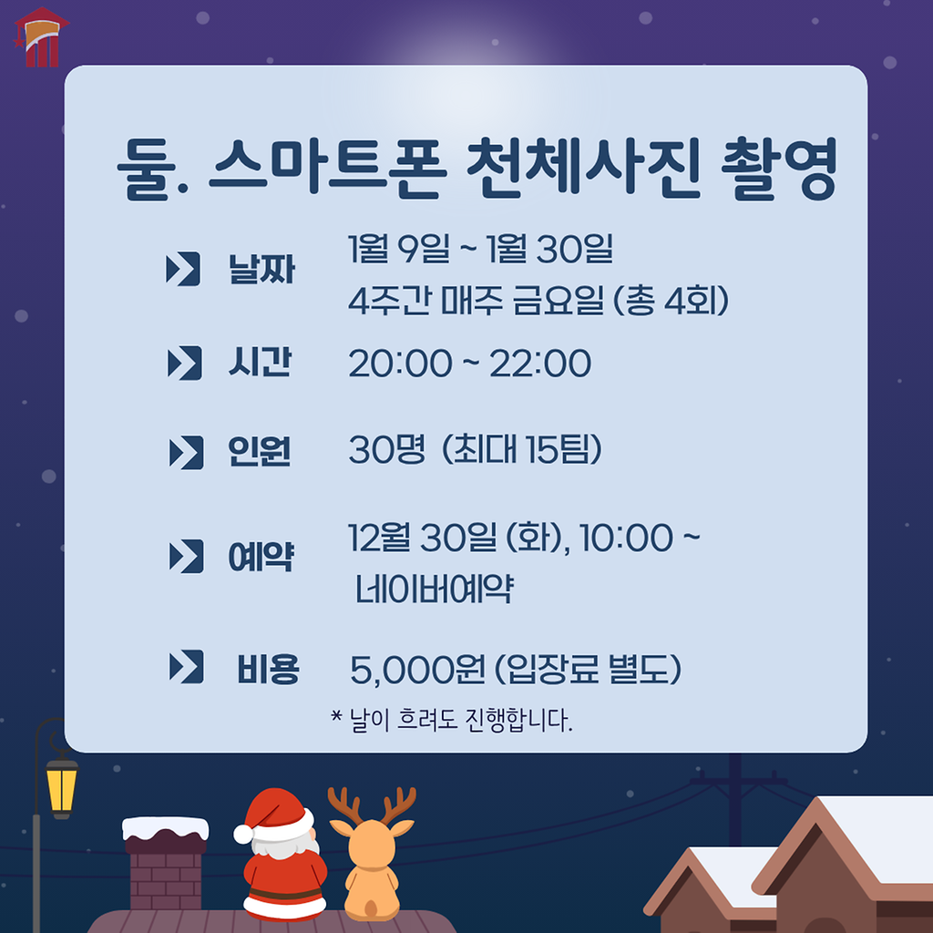 (예약) 12월 30일 오전 10:00 부터 네이버예약을 통해 가능합니다.